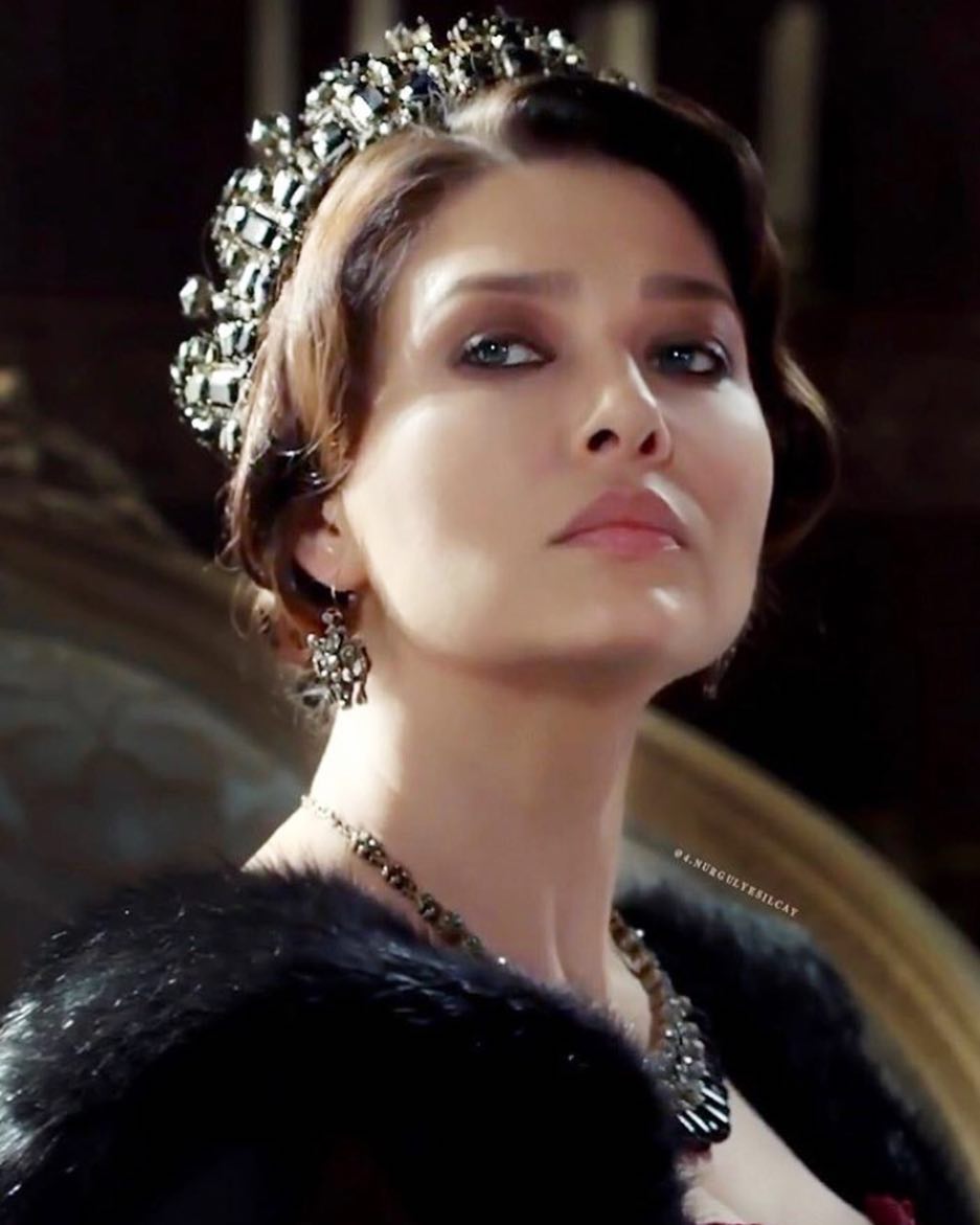 این بازیگر معروف ترکیه ای در این فیلم همبازی بازیگر مرد ایرانی فرهاد اصلانی است و در این فیلم در نقش دلارام ظاهر شده است. پوشش او نیز بسیار متفاوت از سریال های اوست و این بار با پوشش چادر و روسری در برابر دوربین قرار گرفته است.